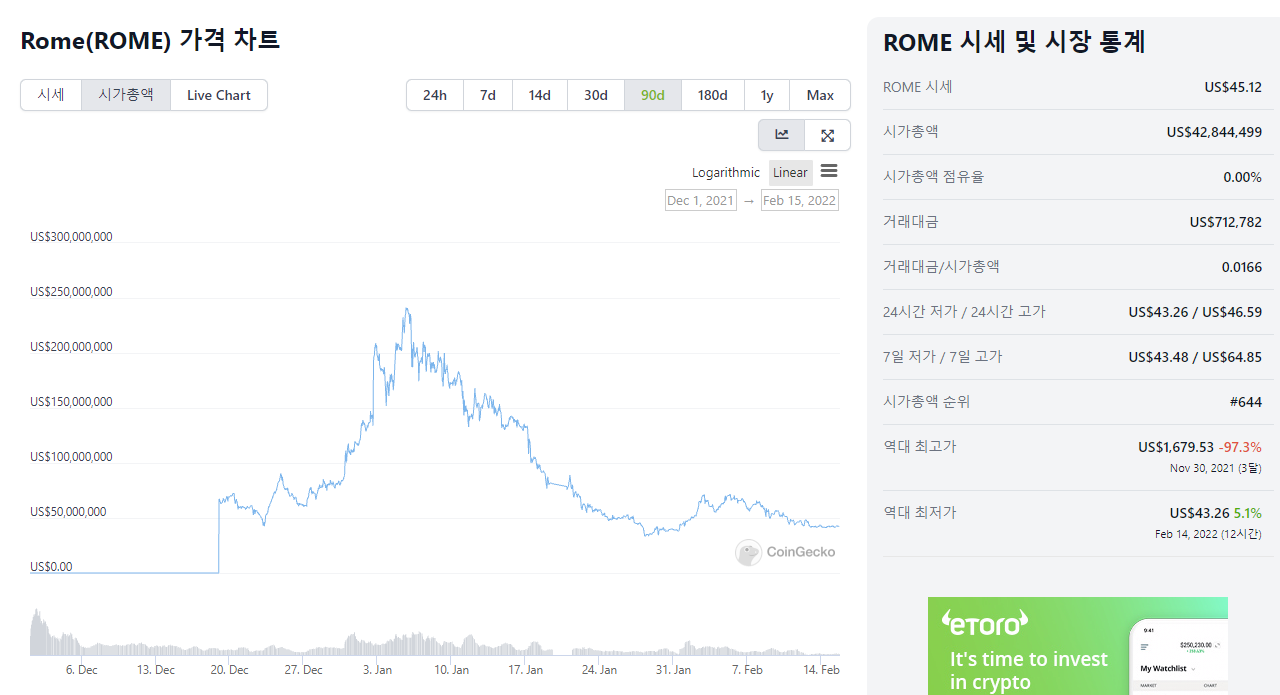 런칭한지 두달 정도된 ROME토큰 시총은 4천 2백 84만 달러입니다. 514억입니다. 어떠십니까? 감이 오십니까? 초기 시총 16억은 매우 적은 금액입니다. 그 말은 펌핑이 매우 쉽다는 것입니다. 앞에서 저는 디파이 2.0에 성공적인 투자를 하기 위해선 반드시 화이트리스트를 통한 초기 접근이 중요하다고 말씀드렸습니다.