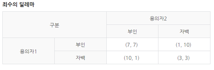 죄수의 딜레마에 대한 네이버 설명입니다.
