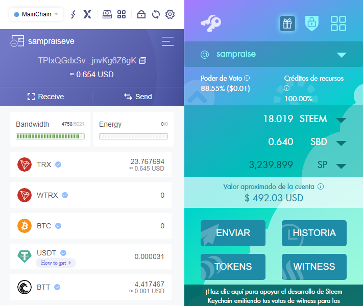 Tienes que tener en cuenta que debes haber iniciado sesión en tus cuentas Tronlink y KeyChain, allí veras la identificación de tu cuenta Tron en la parte inferior y arriba deberás escribir el nombre de tu cuenta de usuario Steem sin el @