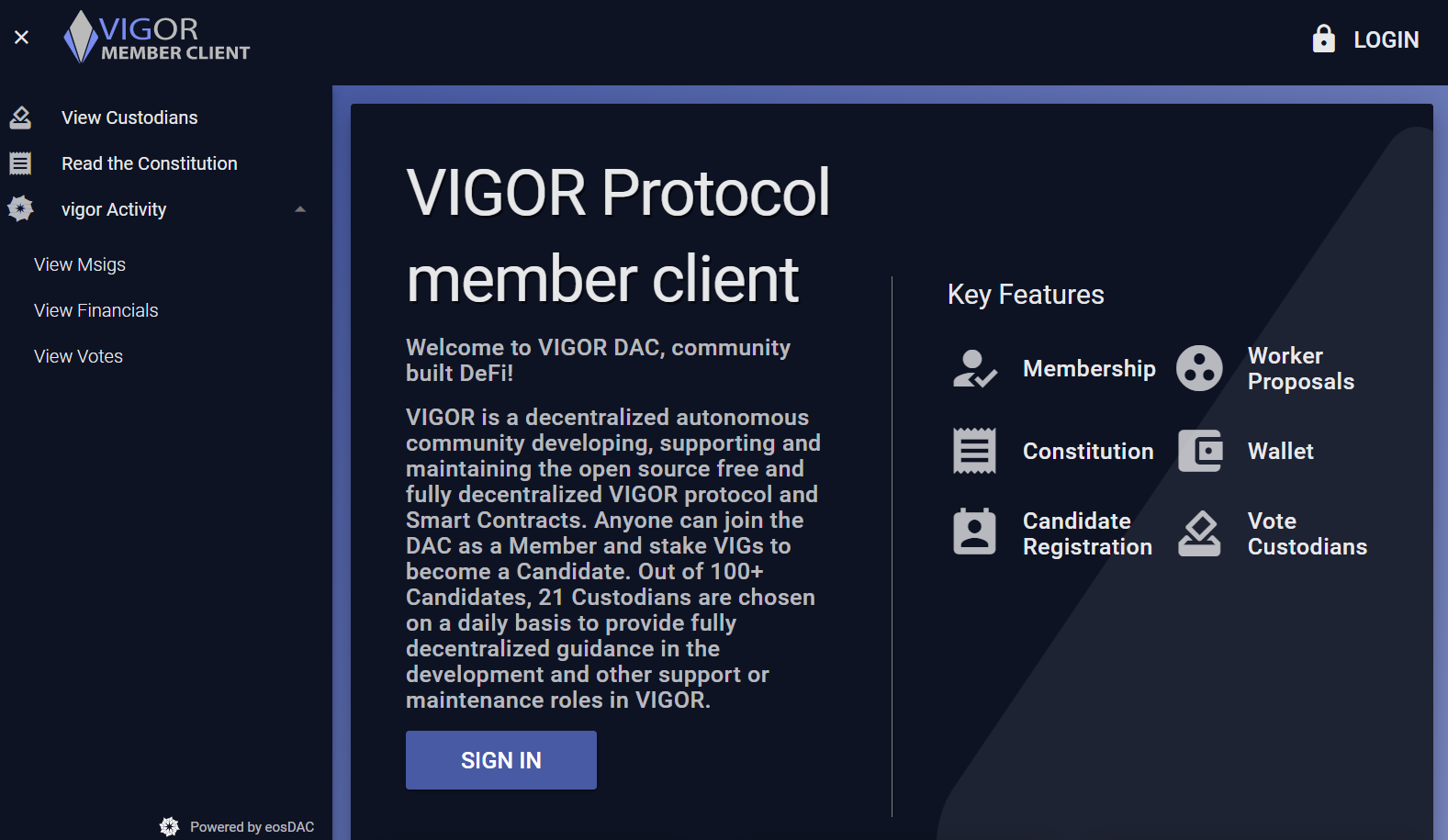 Vigor DAC- The decentralized autonomous organization that manages the Vigor Protocol. Anyone can participate and it is completely transparent.