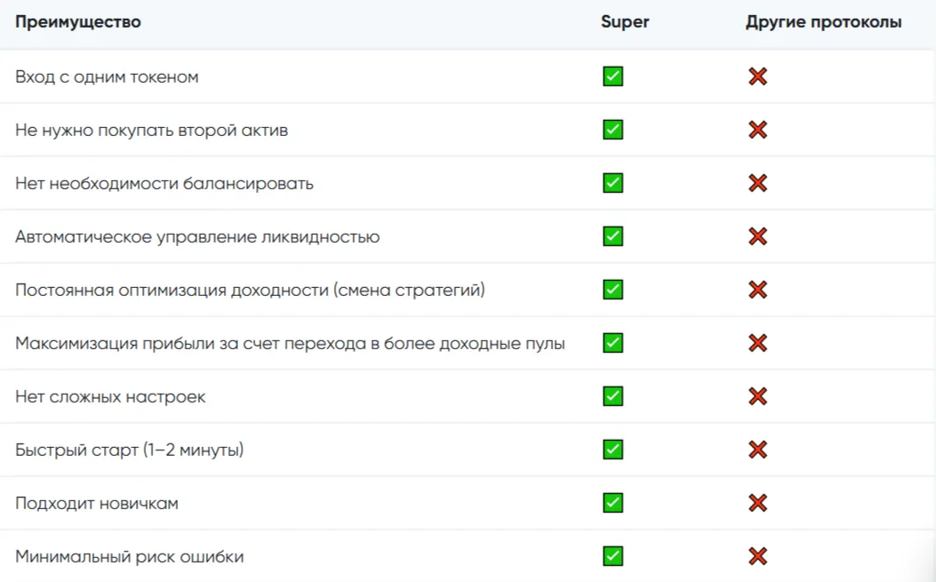 👉 при этом Super постоянно анализирует рынок и переносит ликвидность туда, где доход выше, что позволяет: