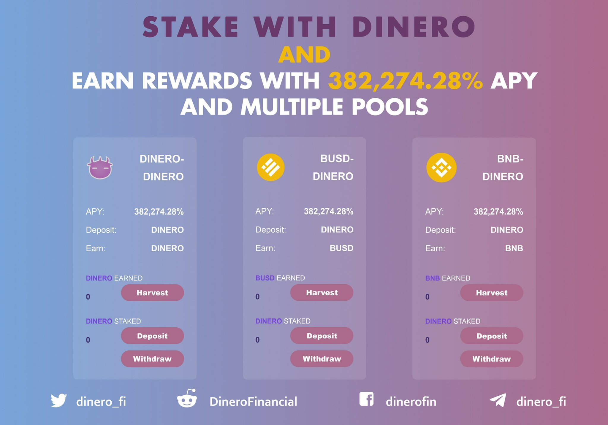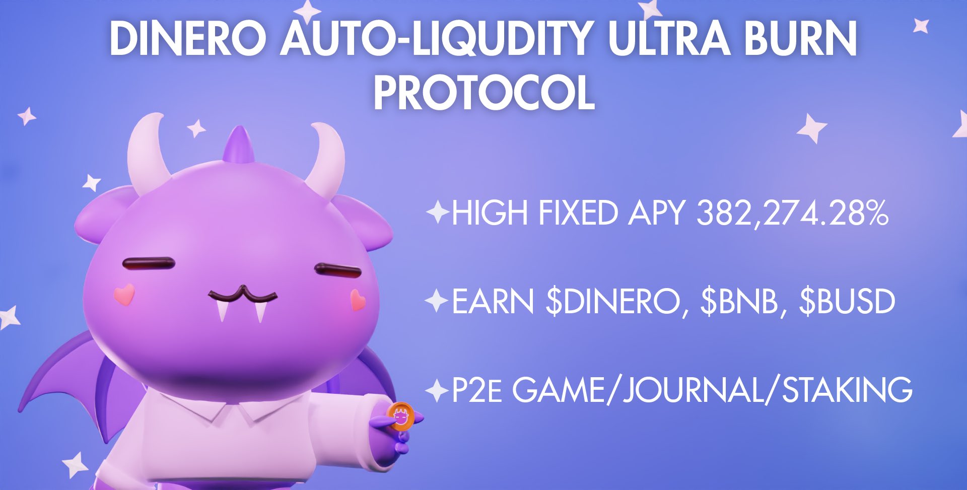 Dinero is a ultra burn & auto-liquidity protocol for crypto assets. Dinero}'s mission is to become the world's most liquid token by providing a high throughput of transactions per second, with a strong focus on low transaction fees, and ultimately delivering secure payments.
