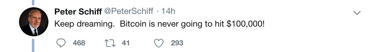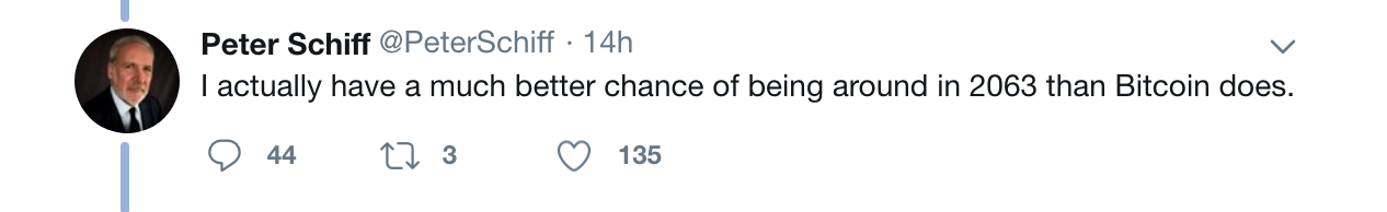 Peter lost his mind on Twitter again. He took on the Crypto Twitter community and got put in his place by many. In his rant he claimed that bitcoin is dumping, will never reach $100k, bitcoin does not have real value, and that it will not be around in the year 2063.