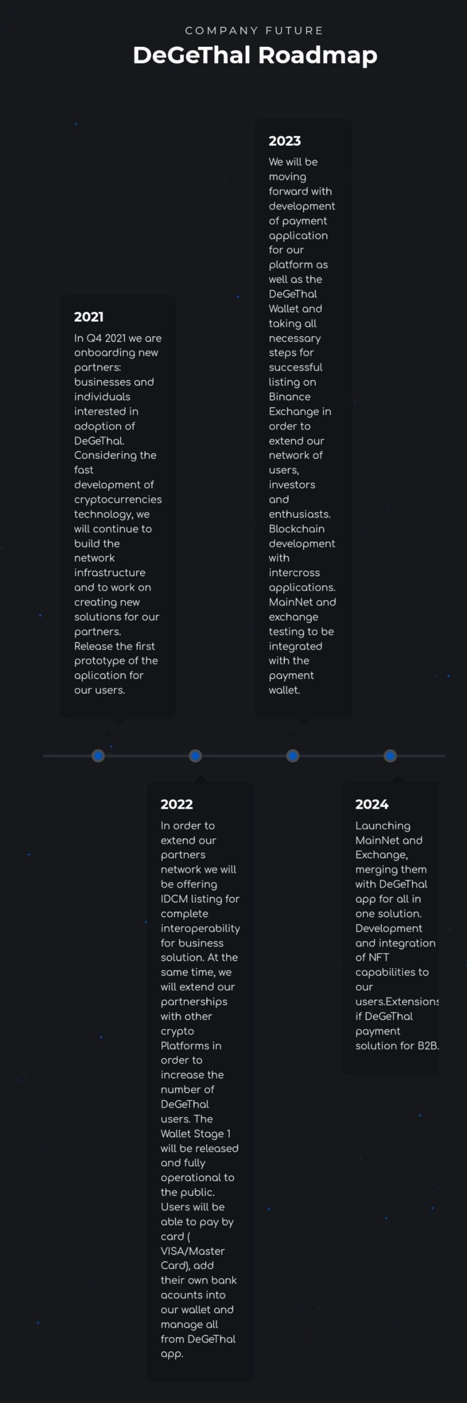 DeGeThal brings a favorable system for safe and secure payments in cryptocurrencies and fiat assets, for trading fiat and digital assets, for accepting payments, making cryptocurrency financial and banking services available to all users regardless of place of residence,their ethnicity, education, and level of wealth.