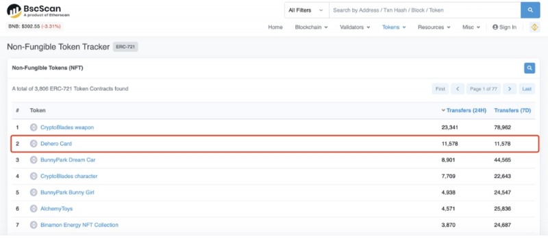 In the official sale of 4,000 limited edition NFT card packs held on July 15, all NFT card packs were sold out in 10 minutes, and DeHero's NFT trading volume on this day maintained second place in the BscScan ranking.