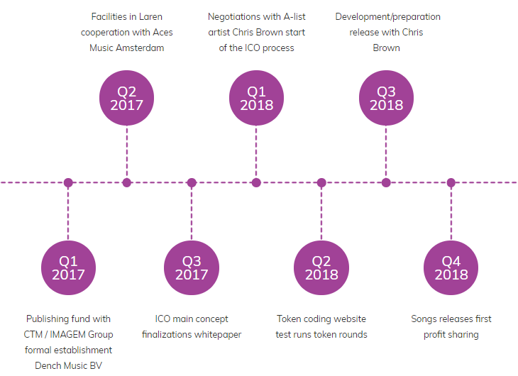 Dench Music's ICO is advanced and fully officially biddable. Stockholders will accept earnings of up to a 30% profit concluded an Investment Agreement. Profit sharing will be scattered quarterly over a period of 6 years.
