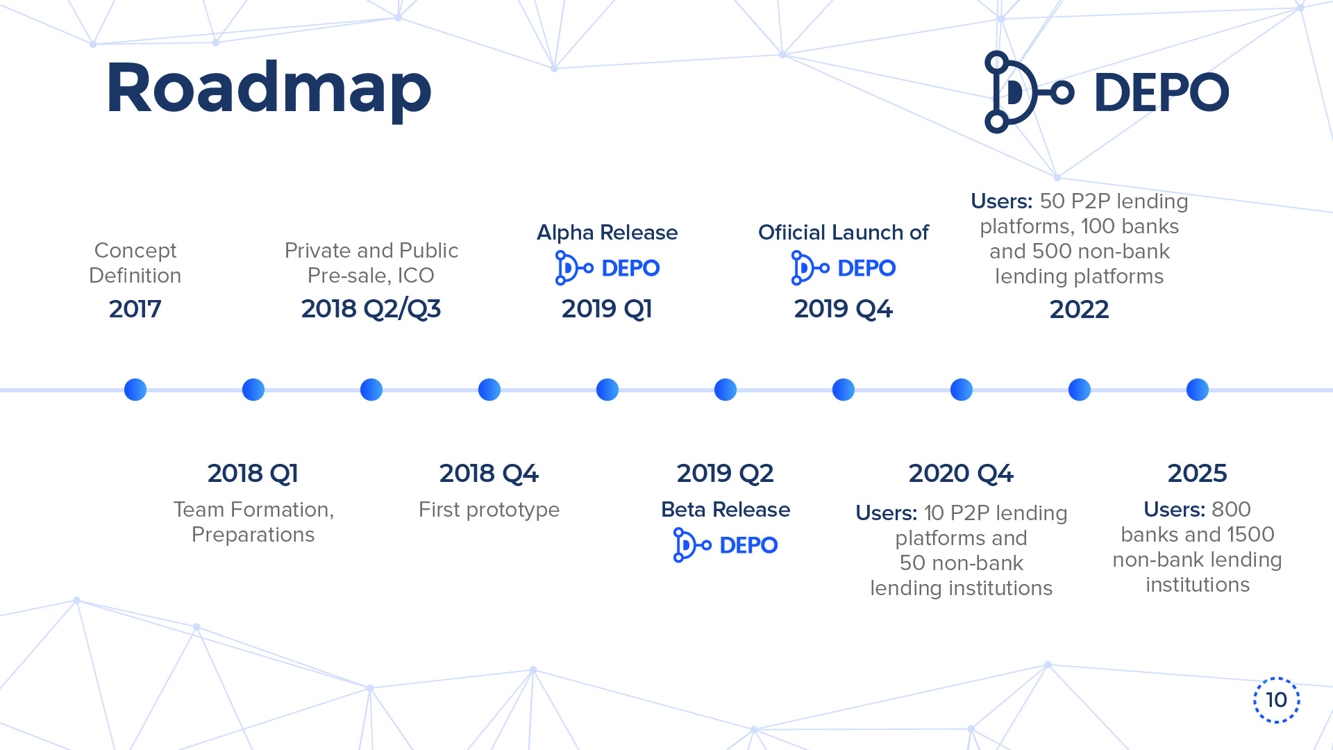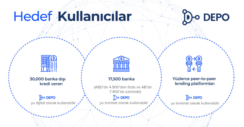 Günümüzde 50 binin üzerinde banka , kredi derecelendirme kuruluşları, kredi kurumları, kredi veren aracı kurumlar kripto para aracılığıyla işlerini yürütmektedirler. DEPO’nun amaçlarından biri de 7 sene içerisinde piyasadaki müşterinin %5'ine ulaşabilme hedefidir. Blockchain teknolojisinin emekleme döneminde olduğumuz bu dönemde bu hedef pek de hayal ürünü olmasa gerek.