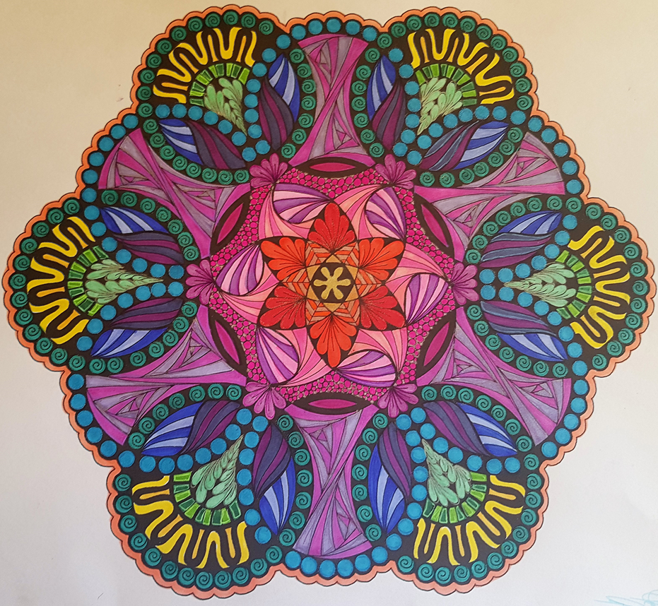 No, I coloured the mandala with Sharpies. I have not yet reached the age of digital art. I am into "slow living". I used to do cross stitch embroidery when my eyes were still fine. I crochet because it takes time to create something, and I take pride in the end product, however long it takes. I colour for the same reason. It is an almost "mindless" exercise, but it calms me immensely to sit with all my pens and paints scattered around me. Instant gratification is not for me...