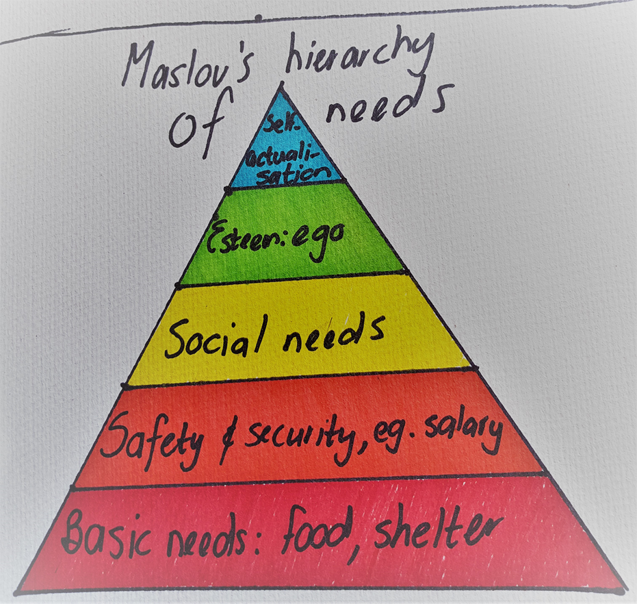 And then Greg burst my bubble. He quickly drew the triangle, and he asked me when last I have partaken in any of those self-actualising activities. Very long ago, actually. So where do I stand then? Well, definitely not on the fourth tier, the one of the ego or esteem. I feel worthless and everything seems pointless. Social needs then? Oh dear, I have withdrawn from all social activities...