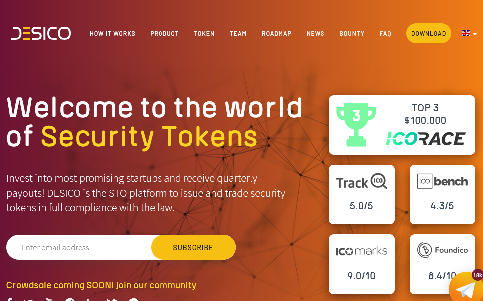 DESICO is the world's first platform for the manufacture, purchase and sale of fully compliant security regulatory tags. The ecosystem will break the $ 155 billion global venture capital market by importing security cards through a blockchain.