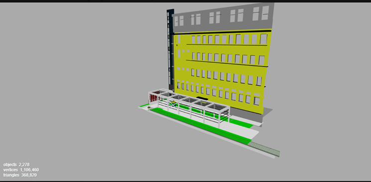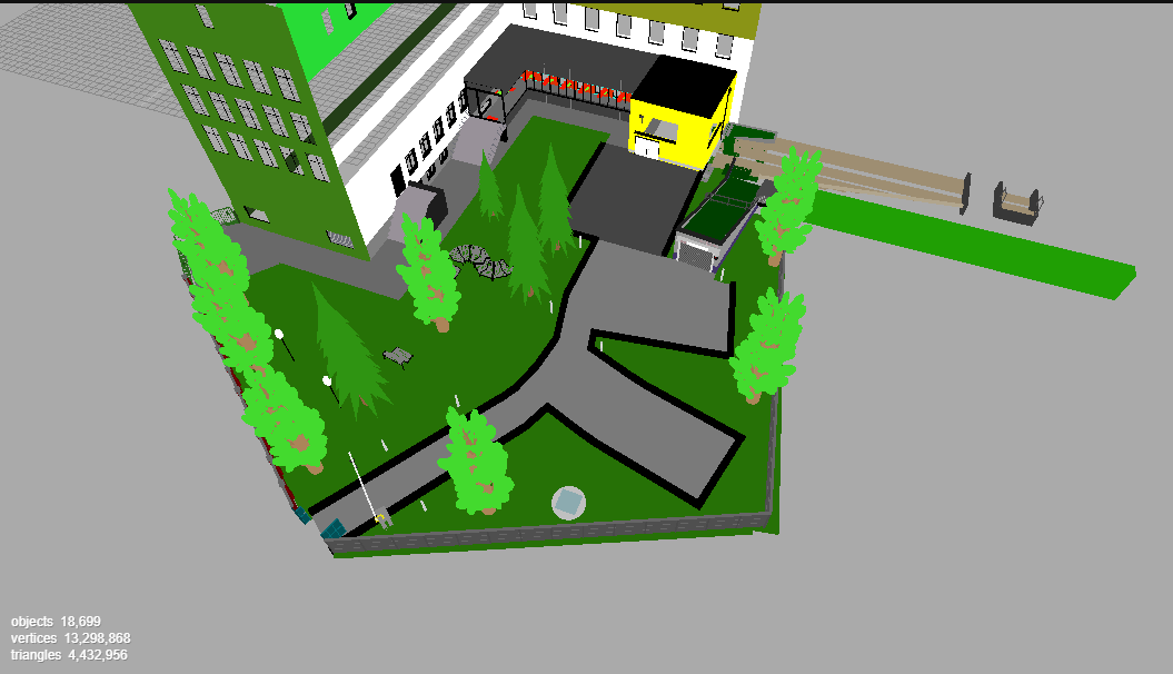 Second week, on Monday my team decided to make the garden parts. I got a part of task to recreate the garden area flat with the fence. It was so difficult because I didn’t had comparison points as wished, but I made it! The brick wall was soooo difficult because I couldn’t move easily the parts of it. Just the wall had about 18.000 objects and every time when I wanted to position some of them my computer couldn’t hold it. This problem occurred within every task. WebGL can be very heavy to work with, you need good equipment. So, when we assembled in one project something we could not take in one group all of them. I finally finished the garden with walls and garage door. I took within my group of objects what the others made while I was suffering with the brick wall and measurements.