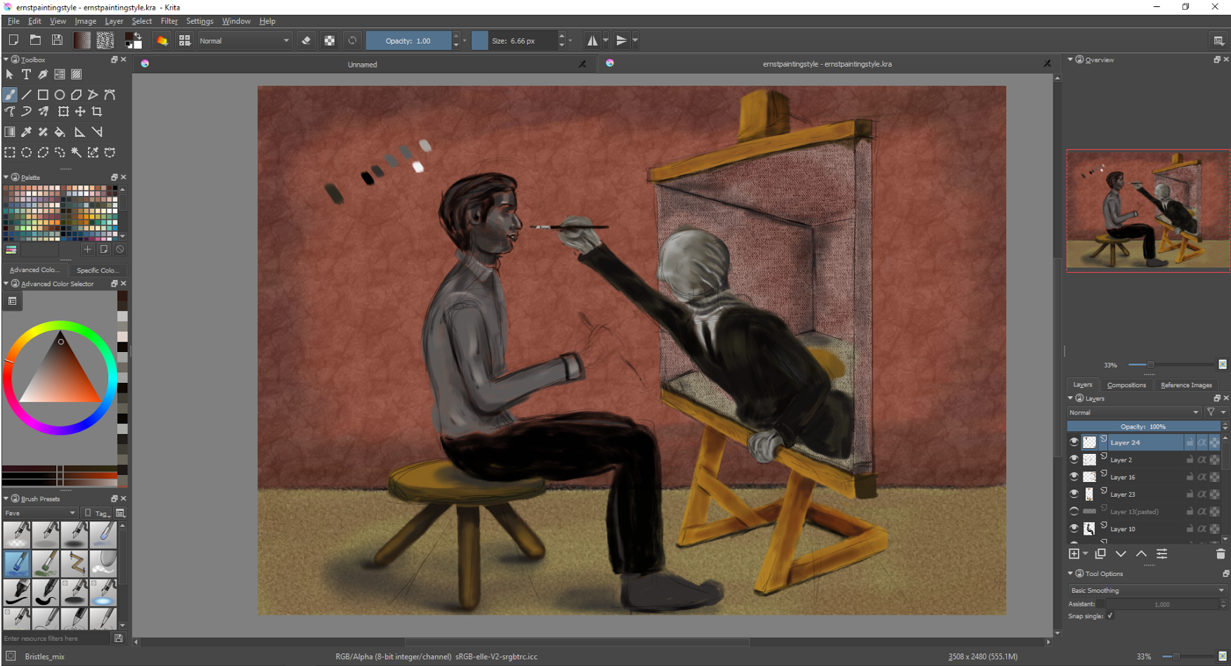 I know it's kind of a common recycled idea to have the painting painting the painter, but I wanted to go with that theme.