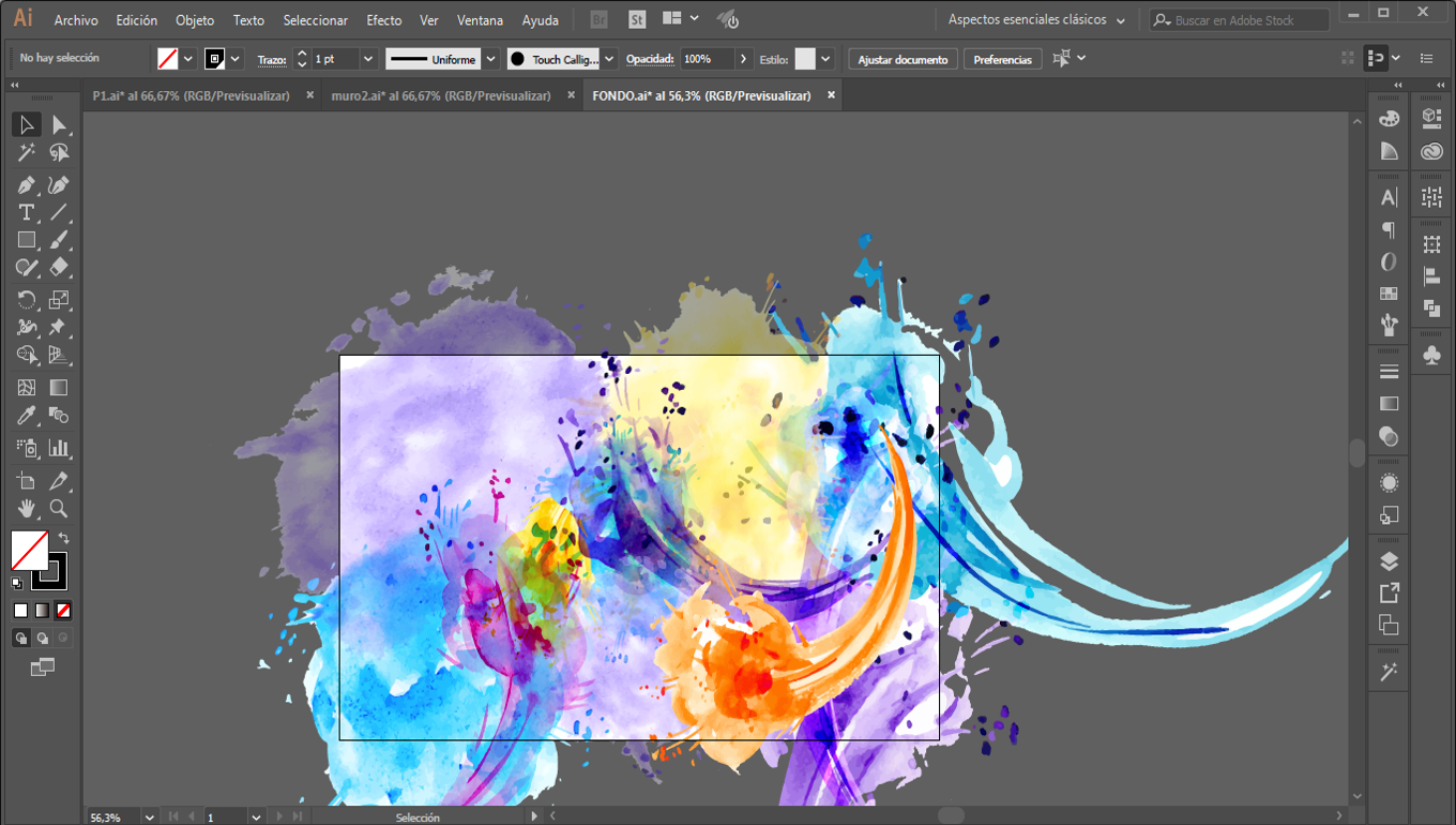 After this I made some sketch by hand, and started to transfer it to Ai Illustrator, for making the composition. As I did not got another idea… I filled all the drawing with black, and take that JPG to Photoshop. There I took the black of, and made it transparent, in order to add underneath this layer, le color mixture that I have made on Ai Previously.