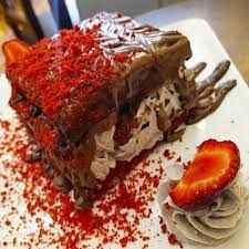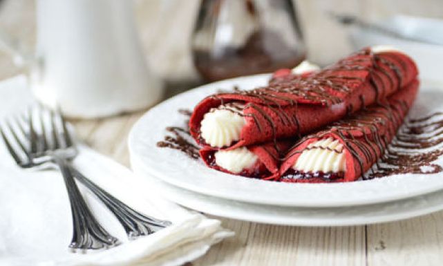 4- Stuff the crepe with ice cream, roll it up, decorate it with liquid chocolate, then serve.
