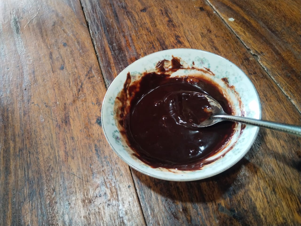 - Then take another clean bowl. In that bowl, double-boil the chocolate and melt it well, making a mixture like this. Mix them until they are similar to the chocolate mixture.