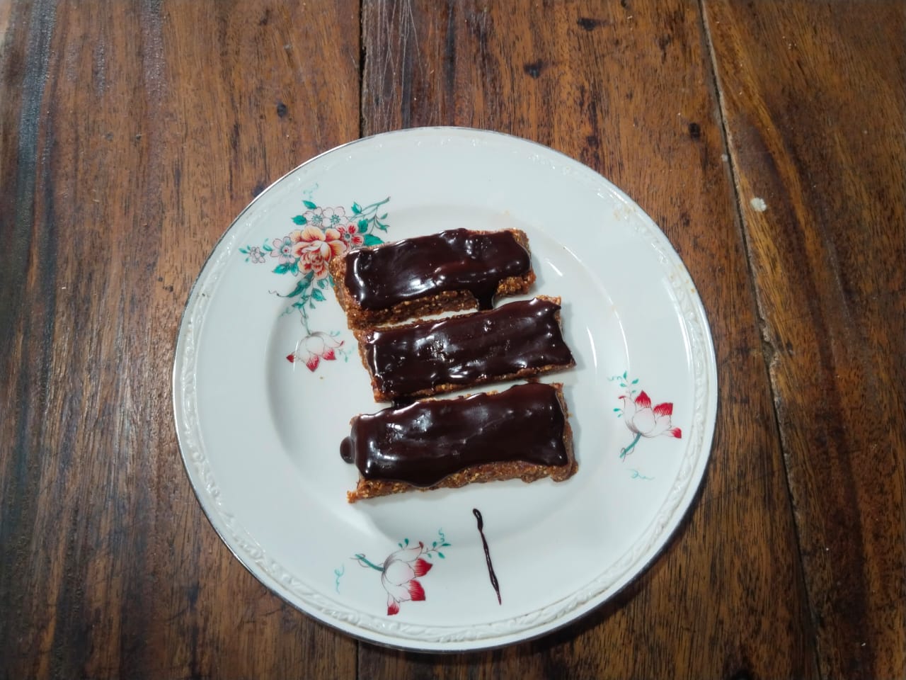 - Now let's add the chocolate to the bars we made. So, add the chocolate mixture we made by boiling it like this on top of the bars like this.
