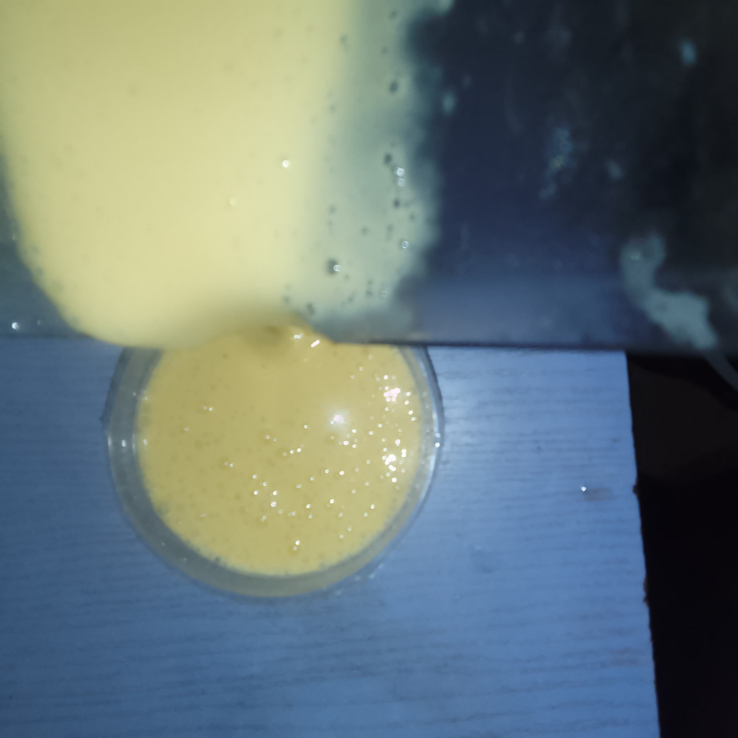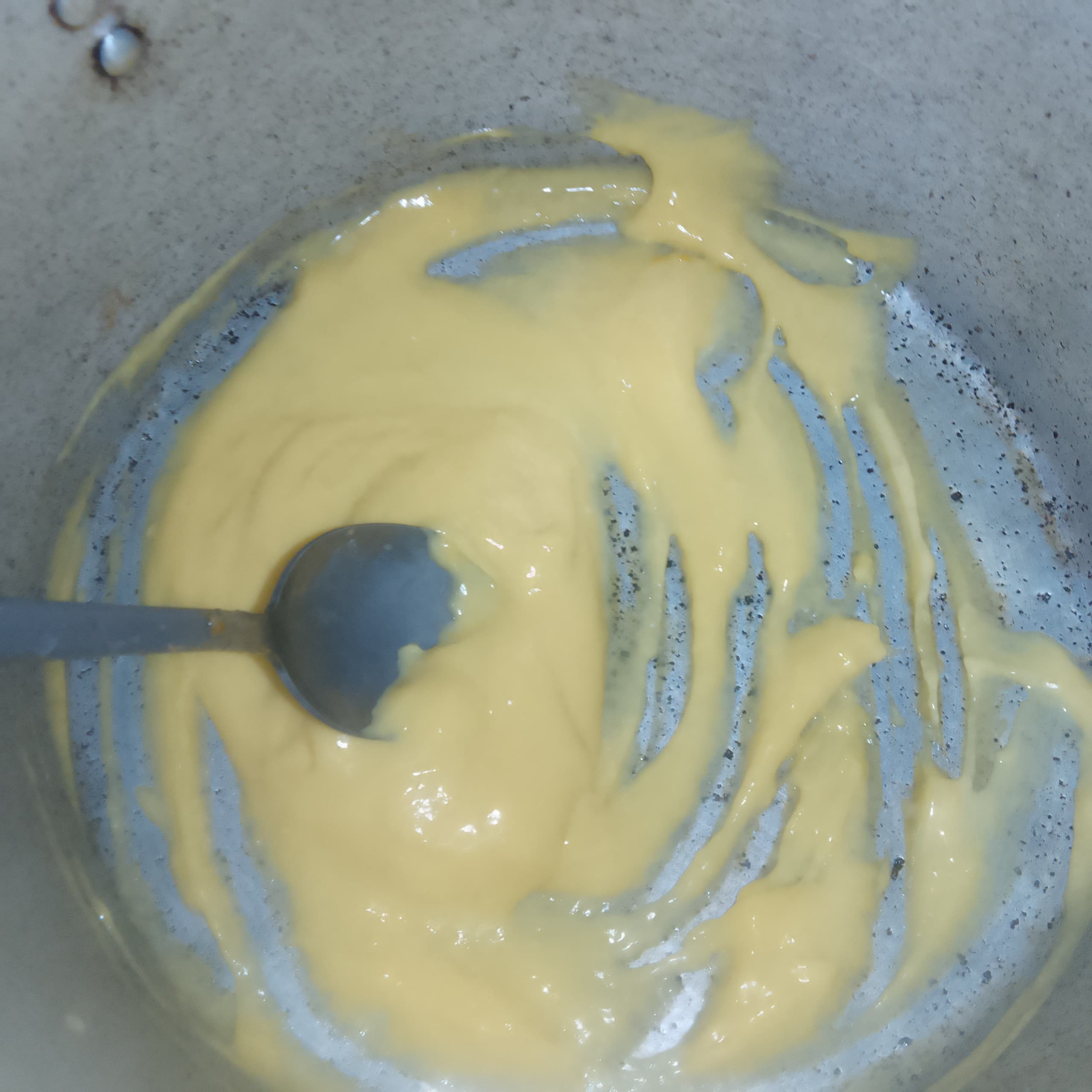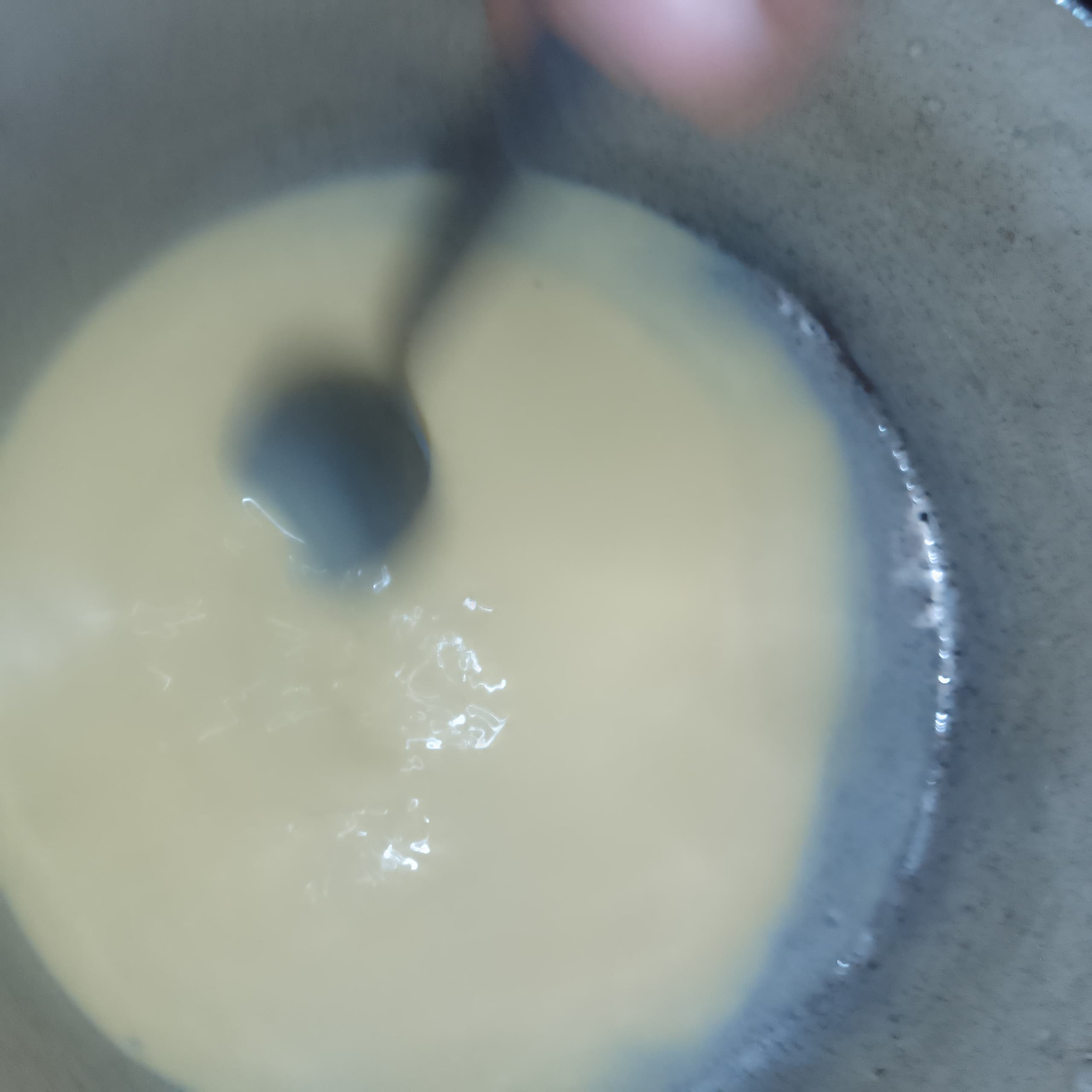 Next, I added 50g of sugar to the mix and stirred until it dissolved completely. At this point, the mixture already had that soft golden custard colour and a lovely scent that promised joy.