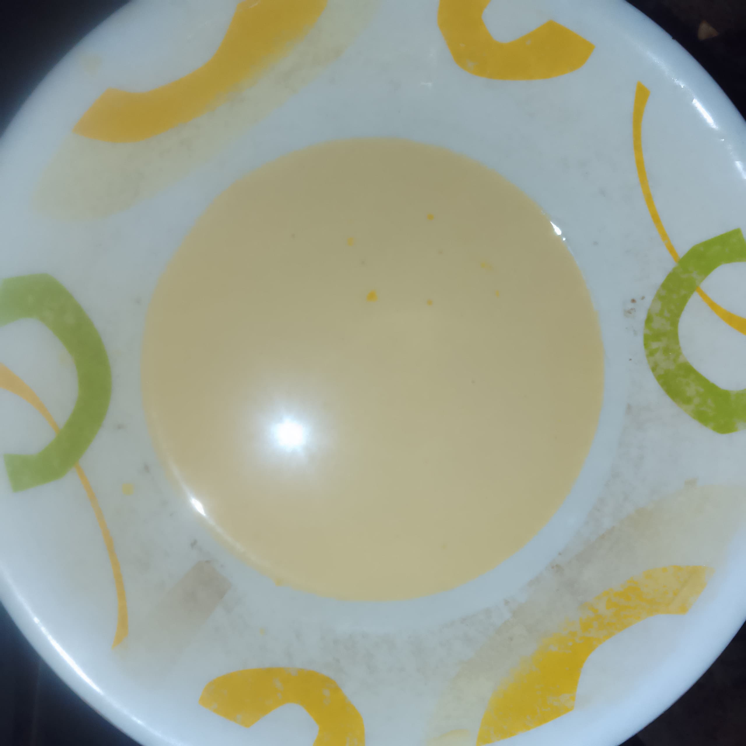 In a clean bowl, I added 500ml of milk and slowly dissolved 5 tablespoons of vanilla-flavoured custard powder in it. The sweet aroma of vanilla filled the room, so strong and pleasant that even my kids came running in asking, "Mummy, is it ready yet?"