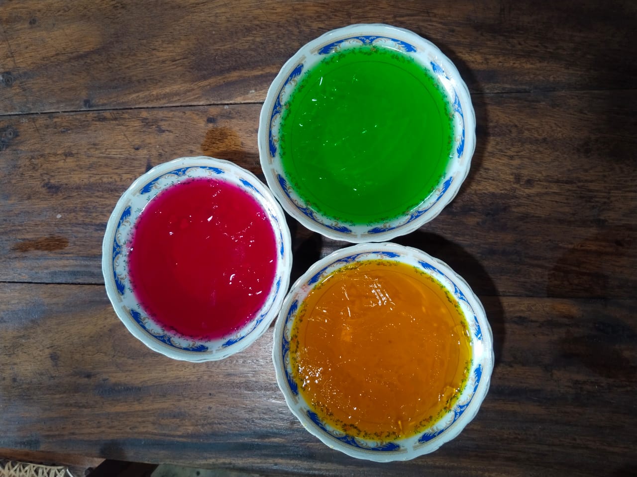- First, I took three clean jars. Then I added jelly packets to each jar, one by one. Then I poured hot water into the jars, stirred them well for a while, and kept them in the refrigerator.