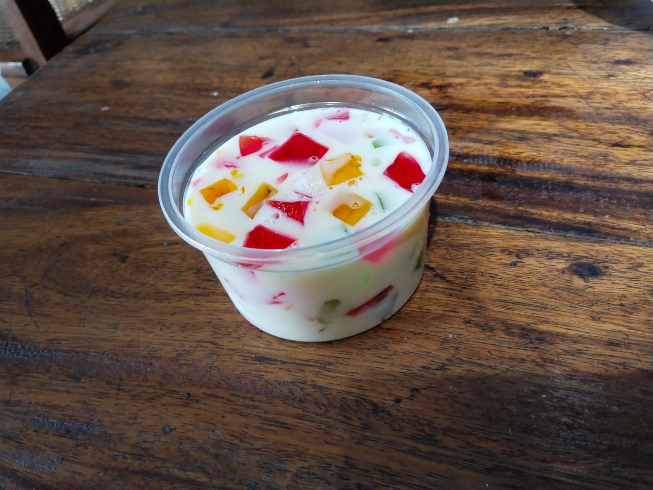 - So I added the milk mixture I made to the M&M container. Added more jelly pieces on top and kept in the refrigerator for about two hours.