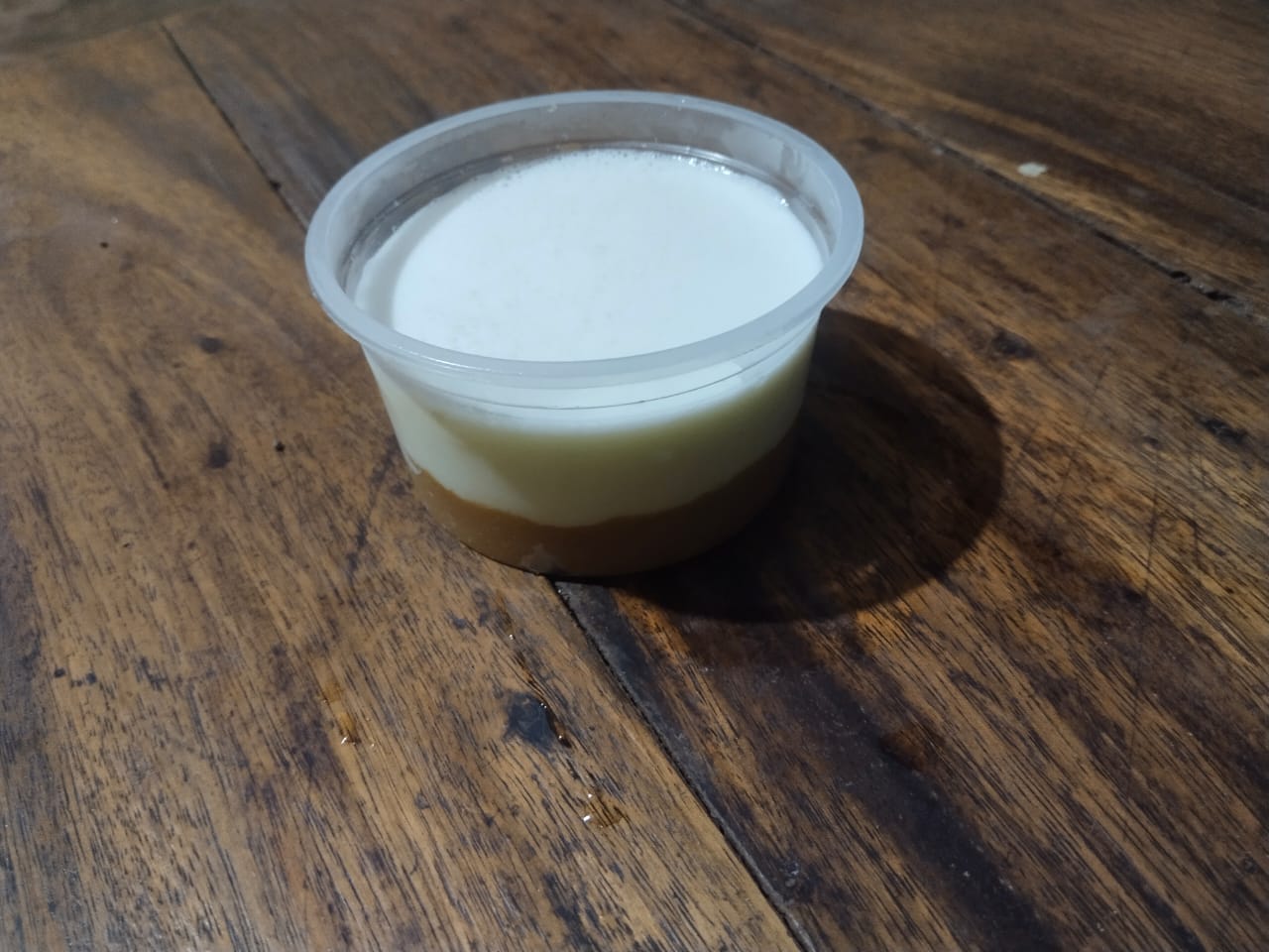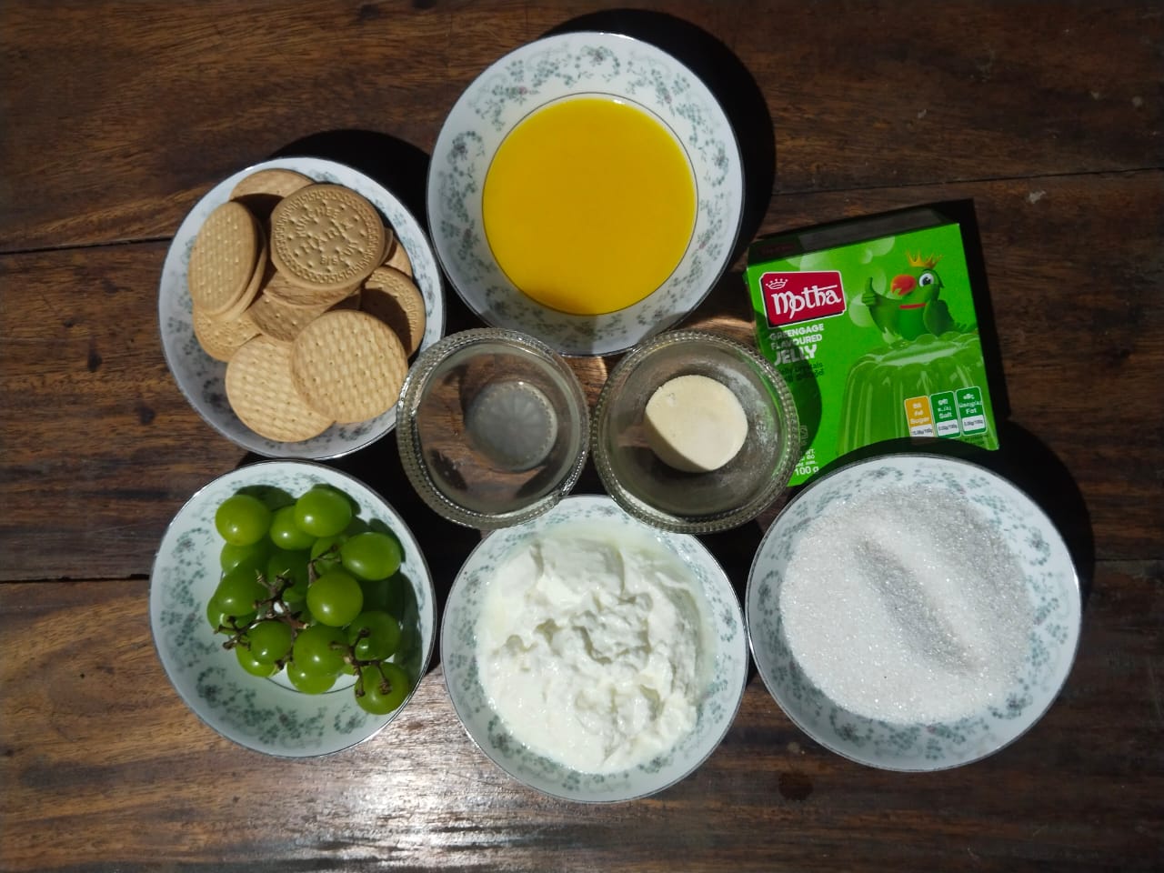- Now take the cup where you added the biscuit layer earlier. Then add about half of the prepared mixture on top of the biscuit layer, but not completely, and keep it in the refrigerator. Then dissolve the jelly packet in 250ml of hot water and let it cool for a while.