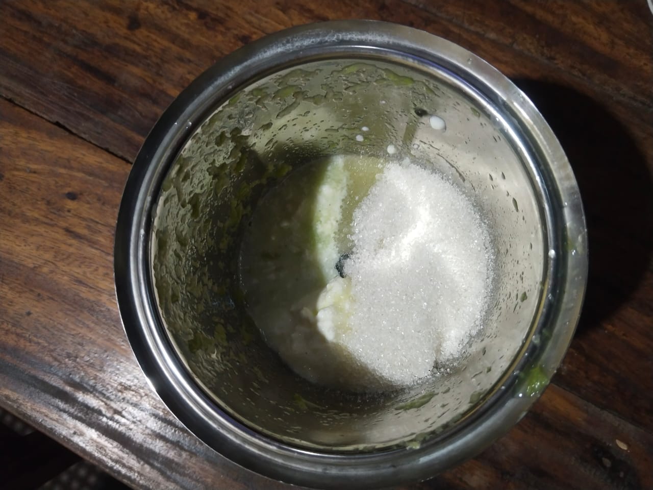 - Now add sugar to taste to the blender cup. Then blend the mixture. Then add the dissolved gelatin to it and blend it well for about a minute.
