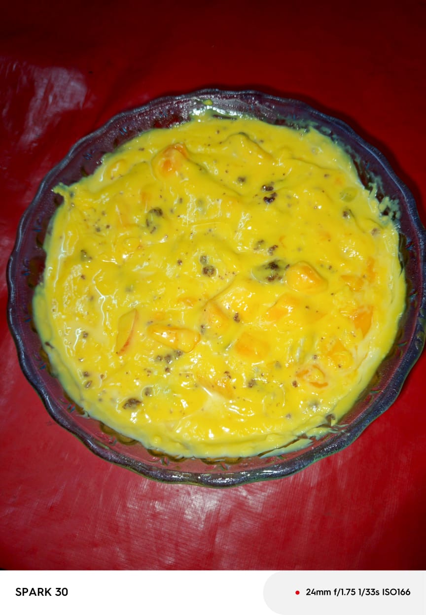 ⭐ I have chosen the Mango flavour for my dessert because this is one of my favourite fruit flavours. As we all know, Mango is the king of all the fruits. Especially in summer, the Mango fruit is enjoyed by everyone. All of my family members also love mango flavour, that's why I have also chosen this flavour. Beside this, Mango is available nowadays in my country Pakistan very easily because here is the summer season .Moreover their are a lot of great benefits of this fruits and also it is a natural sweetner.