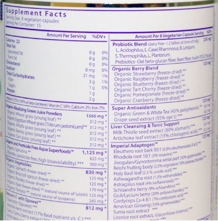 가장 추천하는 제품은 Paradise herbs사의 Orac-Energy greens 제품입니다.