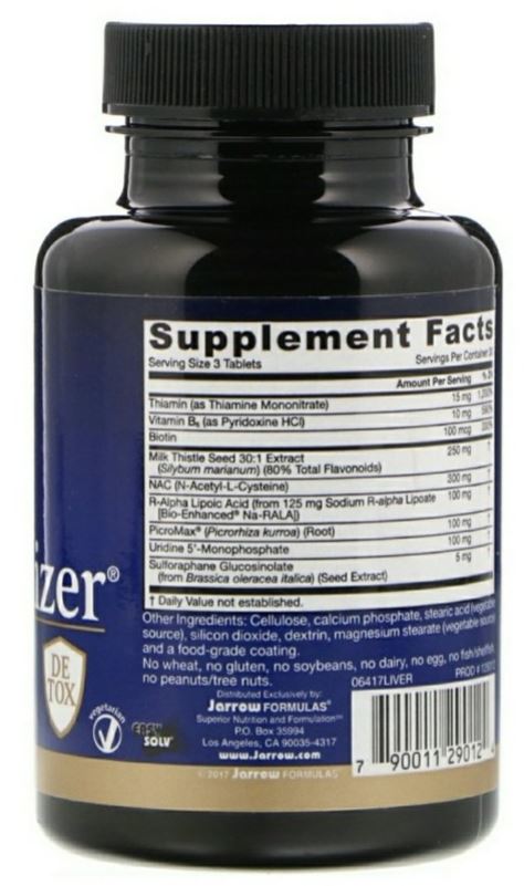 Jarrow사는 중저가의 대중적인 영양제를 잘 만드는 회사인데요, 성분을 보시면 티아민, 비타민 B군, NAC 등 간의 기능을 돕는 성분들을 종합적으로 Tablet으로 만든 형태입니다.