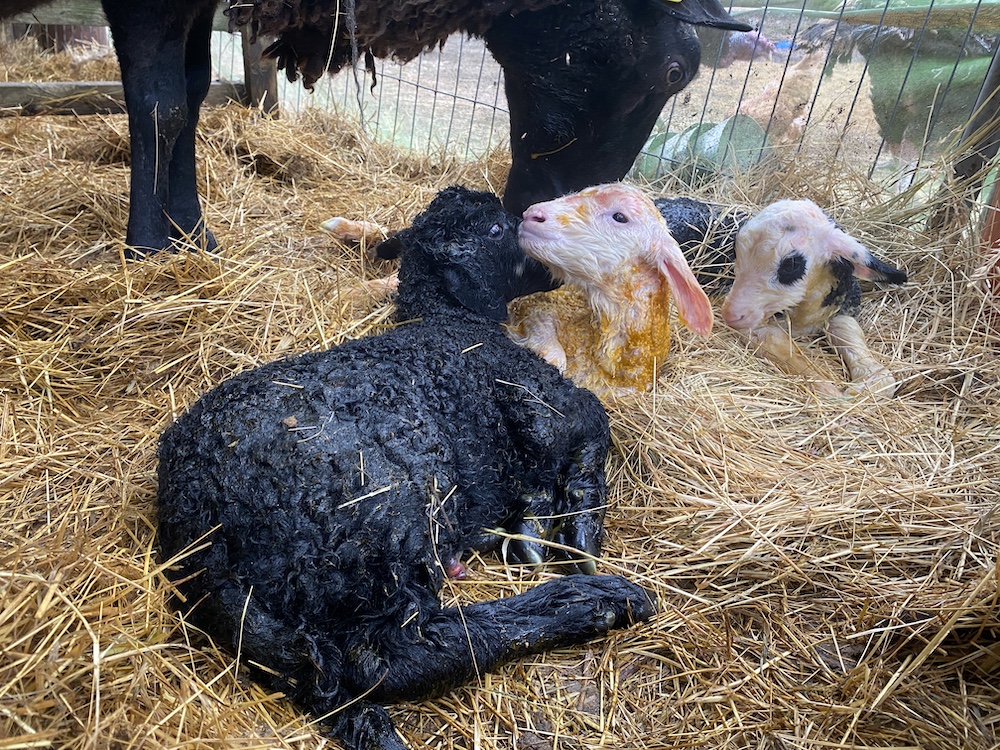 Der beste "Fall" war folgender (selten!): Ein Schaf hatte eine Totgeburt, am nächsten Tag hatte ein anderes eine schwere Drillingsgeburt. Während dieses kämpfte und sich nicht um die beiden bereits geborenen Lämmer kümmerte, zog sich die lammlose Mutter ein Kleines still und heimlich immer weiter an sich ran und begann, es abzulecken. Schon war es adoptiert. Beide Mütter waren zufrieden, alle Lämmer sind durchgekommen... 😊