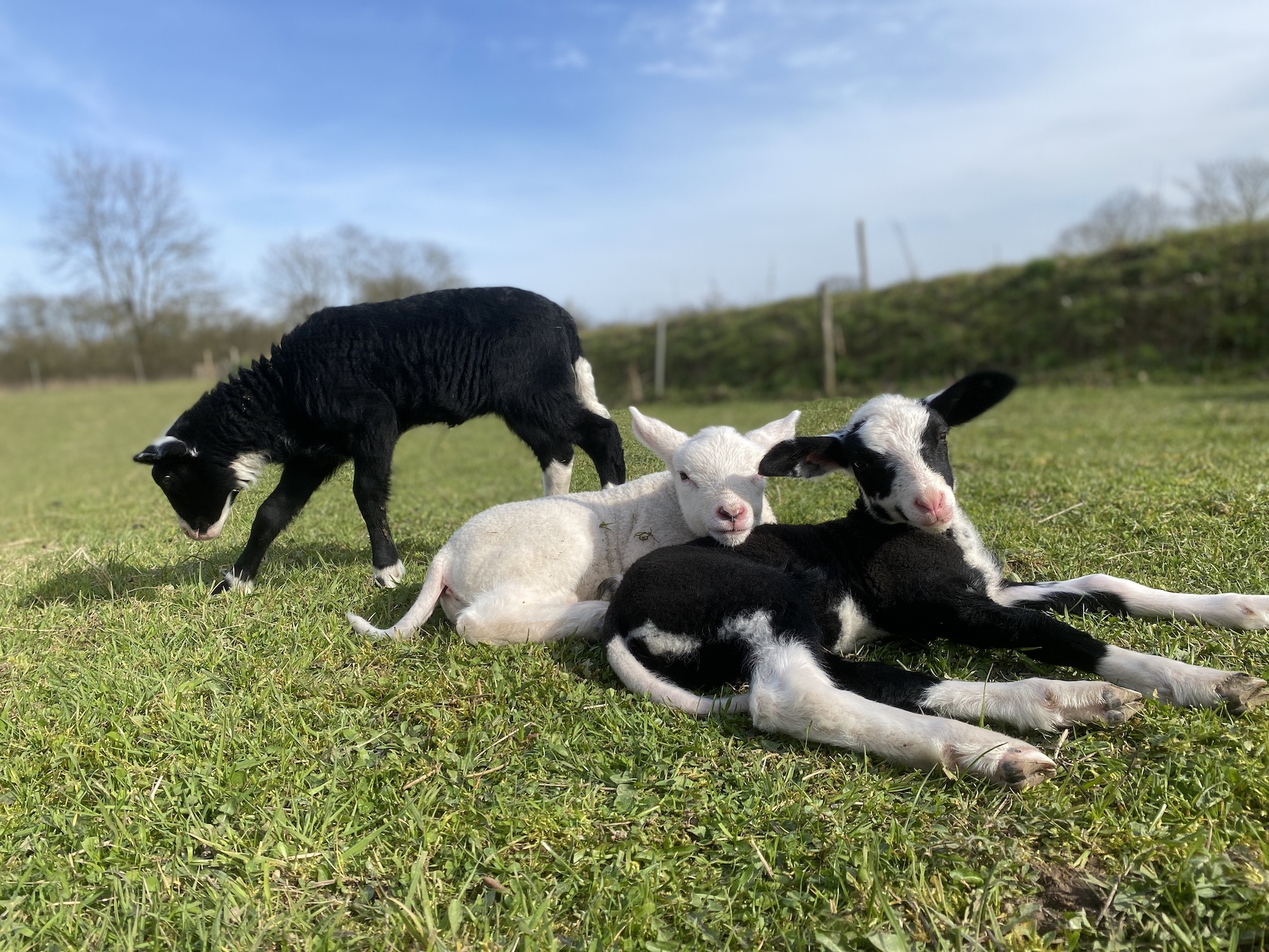 Wie gesagt gehörtest du zum allerersten Wurf. Ob du wirklich das erste eigene Lamm warst, weiß ich gar nicht genau, denn Mama Freckles hat deinen Bruder Knut (nach der Blauzungenkrankheit schon lange ein Wolkenschaf), deine Schwester Mascha (das allerschönste Jungschaf auf der Auenweide) und dich ganz alleine zur Welt gebracht. Ich entdeckte euch erst etwa 15 Minuten später. Ihr drei wart eine ganze Woche älter als deine nachfolgenden Cousins, Cousinen und Halbgeschwister. Sieben Tage machen eine Menge aus, und so habt ihr gemeinsam die ganze Babyrasselbande ganz schön aufgemischt.