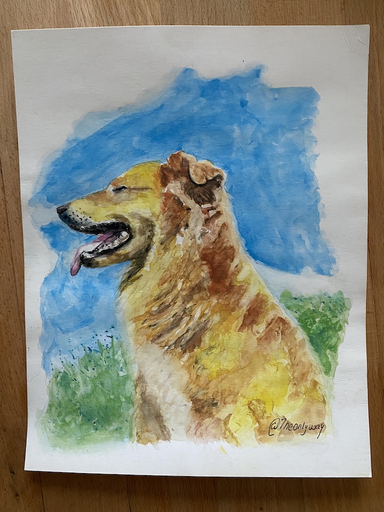Nach mir war mein Mann völlig begeistert. Insbesondere vom Mäx-Bildnis: "Wow! Das ist er! Das ist dein Mäx, unverkennbar!" Ziemlich geflasht zeigte ich das Aquarell am Wochenende auch noch Freunden - dasselbe Urteil: ¡Eso es Mäx! ¿Quién es el artista?