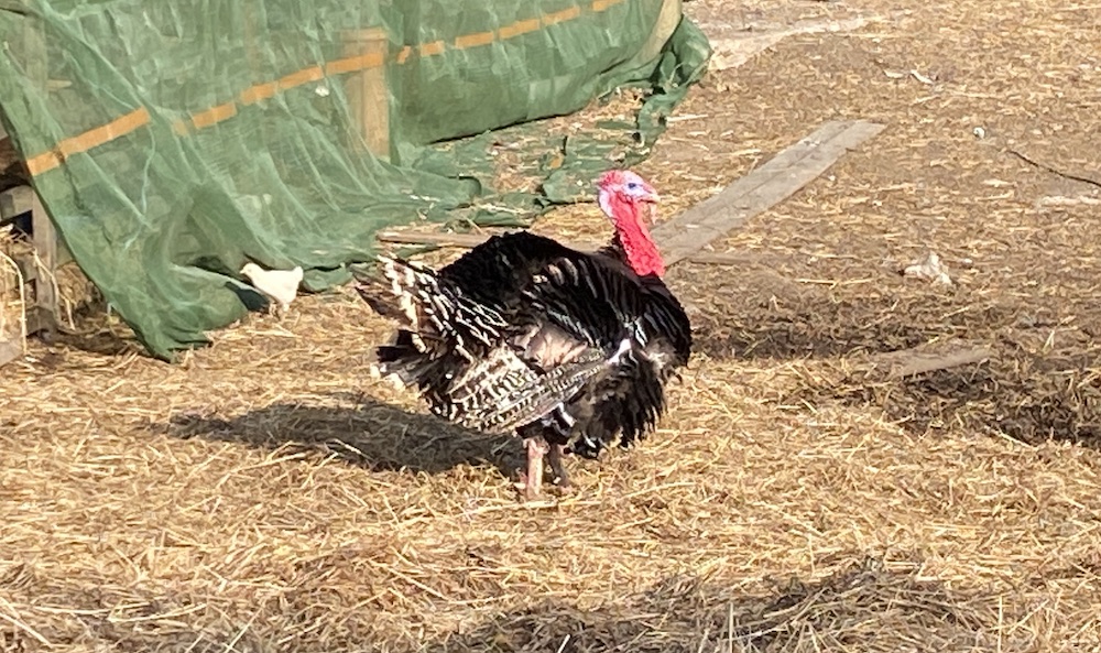 Ich glaube dem Truthahn sind zu viele Frauen auf dem Hof (Menschen, Hühner, Schafe) und er versucht verzweifelt das einzudämmen... 😉😁✌️