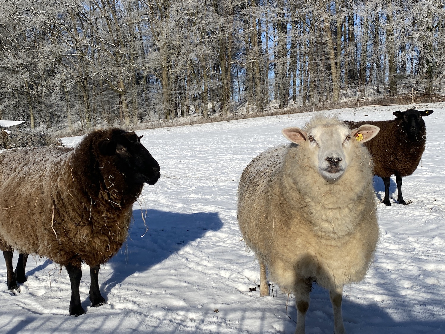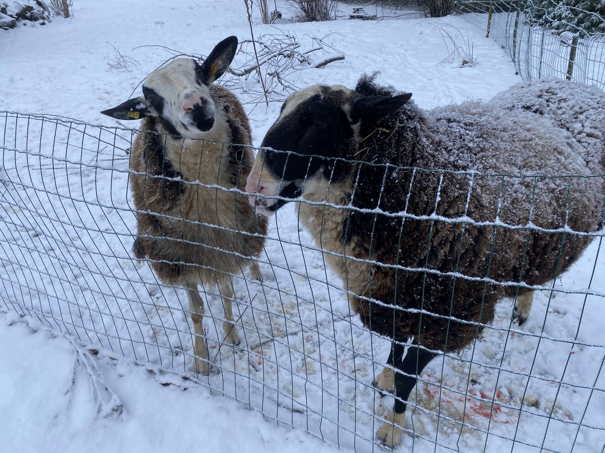 Dieses verstärkte Outdoor-Camping der Schafe bedeutet aber auch, dass sie draußen schietern. Grundsätzlich kein Thema, nun aber treten sie sich ihre eigenen tiefgefrorenen Köddel in die Klauenspalten. Die Tiere laufen wie auf Kieseln. Der ganze Clan humpelt, die Schafe können ihr Problem aber nicht selbst lösen, nicht wie Hunde ihre Pfoten putzen. Naja, die Tiere humpeln solange, bis wir ihnen die Köddel aus den Klauen gepult haben. Bis dahin aber ist es ein weiter Weg, weil Schafens sich nicht so gern fangen lässt.