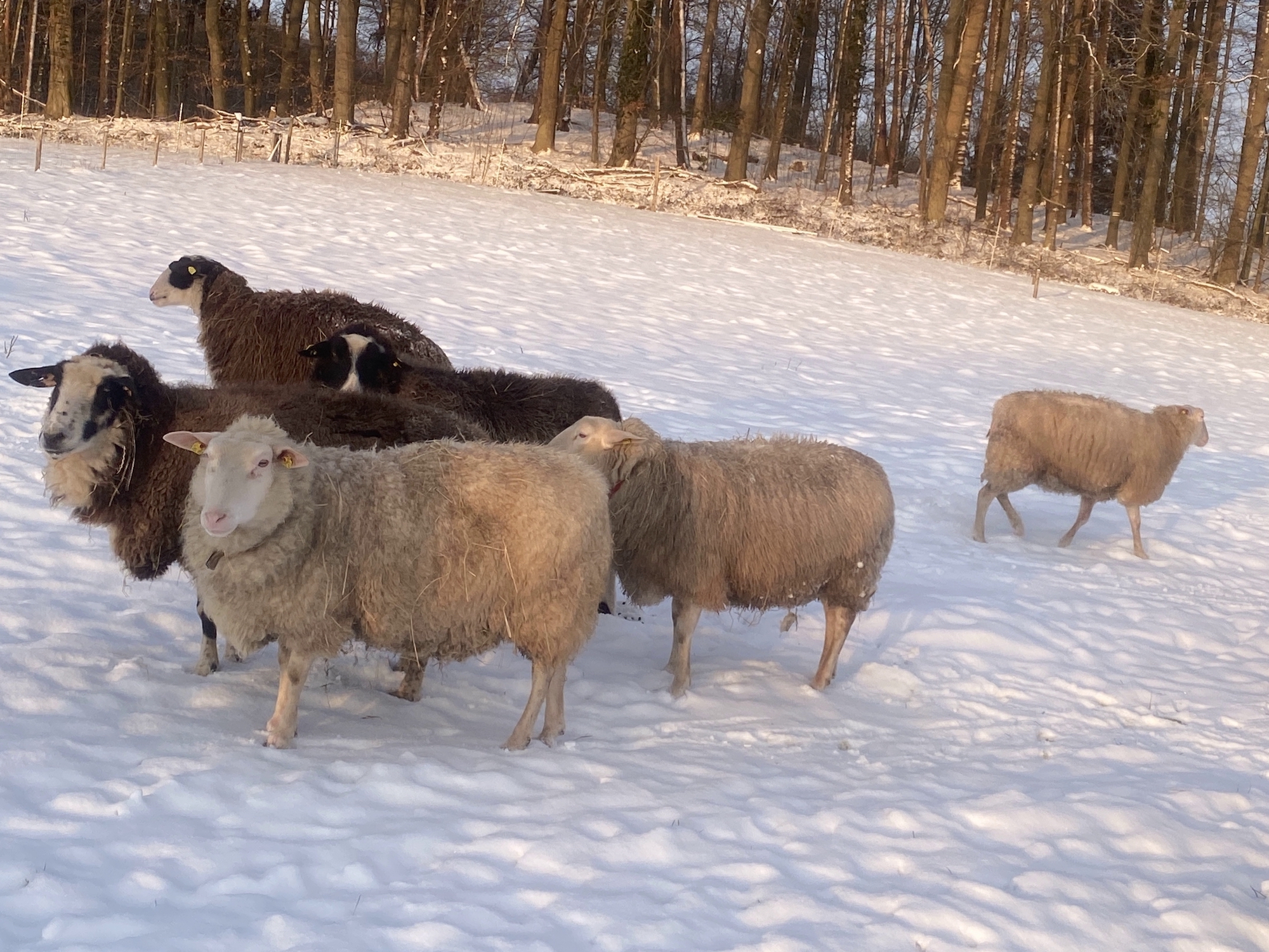 Die Weiden sind besser eingezäunt. Allerdings würde ein hungriger Wolf auch einen 1,80-Zaun und Elektrolitze überwinden (oder untergraben) können, wenn er wirklich wollte. Wir schieben aber wirklich keine Panik - bringt doch nichts.