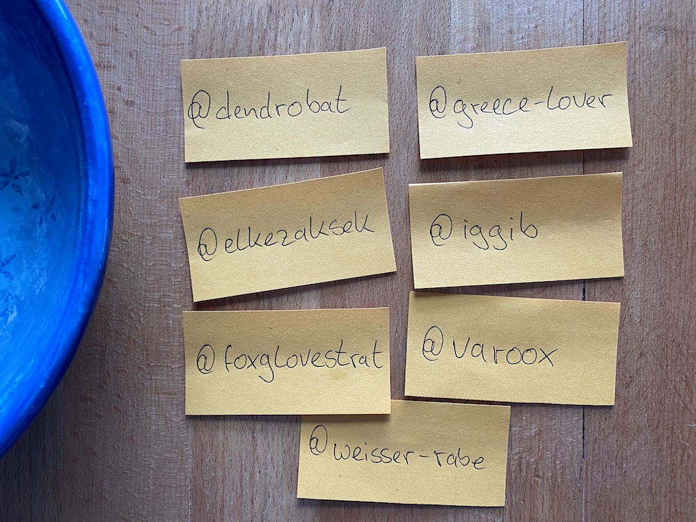 Wir bedanken uns für die Teilnahme am "Wettbewerb" noch bei @meins0815 (👉 zur Vorstellung), der auf seine mögliche Auslosung verzichtete, sowie @iggib (👉 zur Vorstellung), der die Glücksfee diesmal nicht hold war.