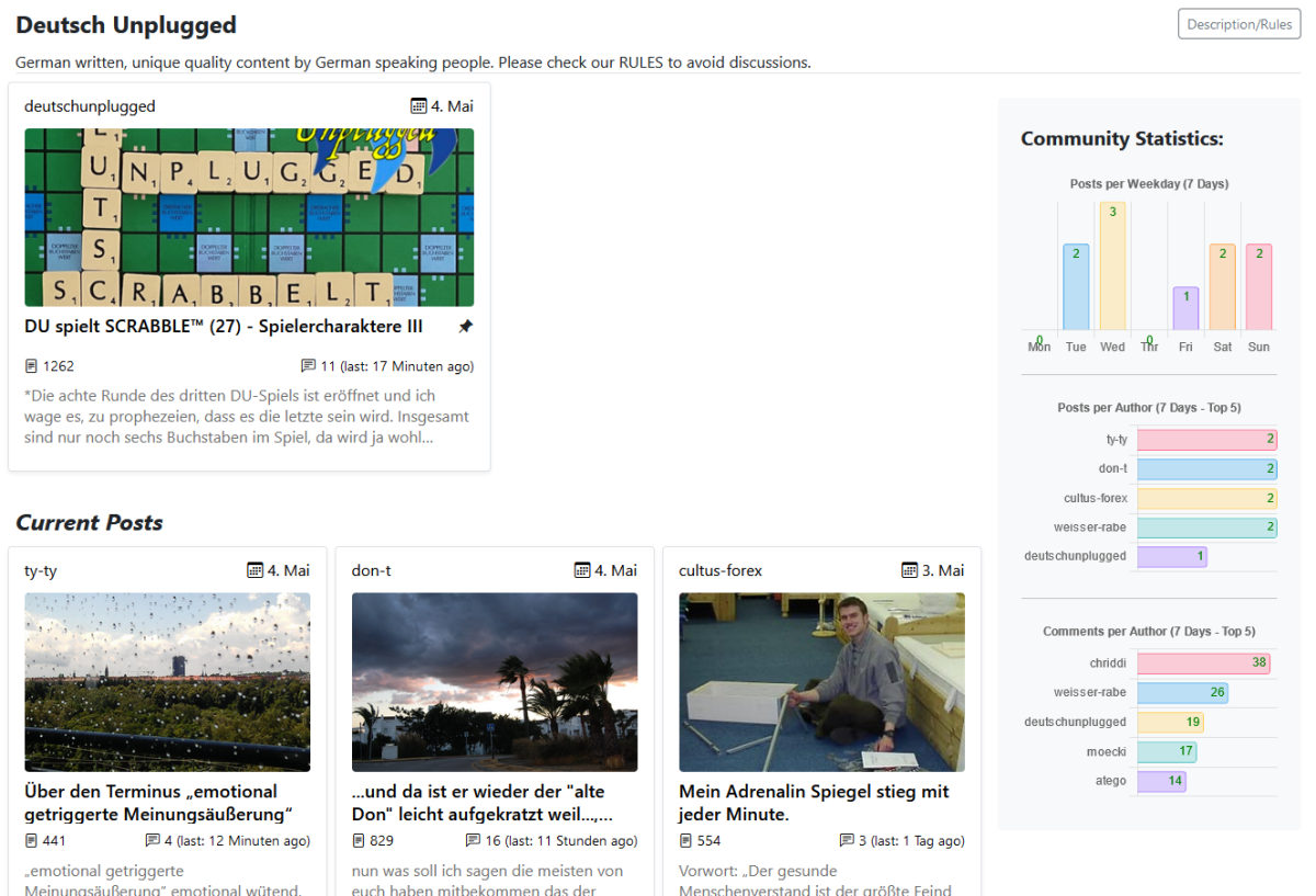 Dort wird euch direkt die Seite angezeigt, wie sie sonst beim Anfügen der Community-Adresse von DU erscheinen würde. Also der gleiche Inhalt wie bei der Adresse https://moecki.online/hive-146118. Statt der DU-Adresse kann aber auch jede andere Community-Adresse angegeben werden.