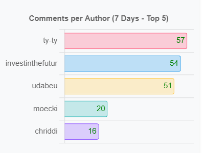 Die Statistik in der Community hat mich schon immer interessiert. Daher hatte ich das schon recht früh auf der Seite. Einen Screenshot hattet ihr dazu schon gesehen. Aufgrund der Datenmenge, die da in einigen Communities zusammenkommen, habe ich die Auswertung zunächst auf 7 Tage beschränkt. Ich werde das sicherlich noch ein wenig umbauen. Möglicherweise auch nur auf besonderen Abruf/Link anbieten. Es ist an sich zwar interessant, aber sicher nicht jeden Tag.Für die Darstellung der Charts nutze ich übrigens Chart.js mit der Erweiterung chartjs-plugin-datalabels.