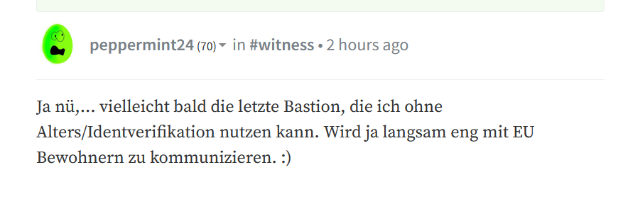 hahaha, er lebt noch, lange war er still, abwesend (geistig sicherlich nicht, wenn ich das so lese), schön noch ein weiteres Lebenszeichen hier zu haben, wo mittlerweile vermehrt Leute drüber nachdenken das Schiff endgültig zu verlassen (ja, auch der Don denkt darüber nach, nur ist Nostr wirklich eine Alternative).