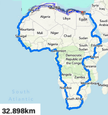 After a whole month's break, which he allowed himself and his bike, he came up with the crazy plan mentioned above: on Sunday he will fly to Marrakesh/Morocco and set off from there in the course of the coming week. He is going to circumnavigate Africa!
