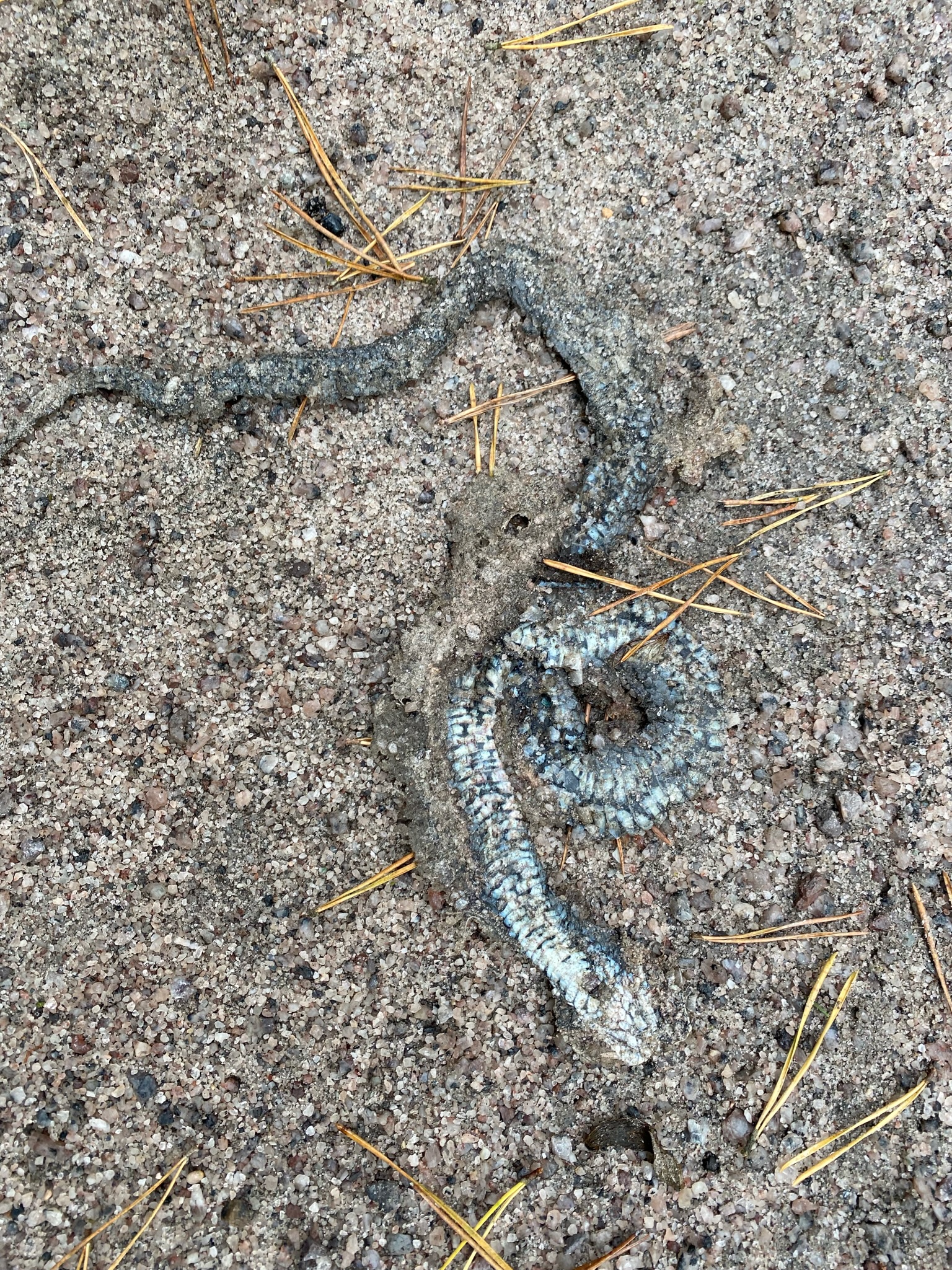 Eine kleine tote Schlange haben wir auch gesehen, oder war das eher eine Blindschleiche? War mir da nicht ganz sicher.