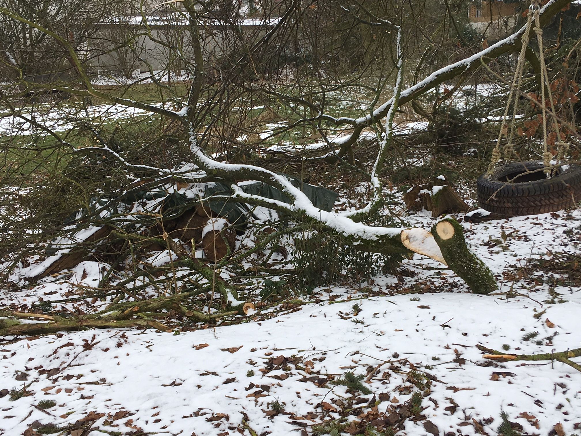 Nachdem Friederike bei uns zu Besuch war, mussten wir leider 3 Bäume fällen.