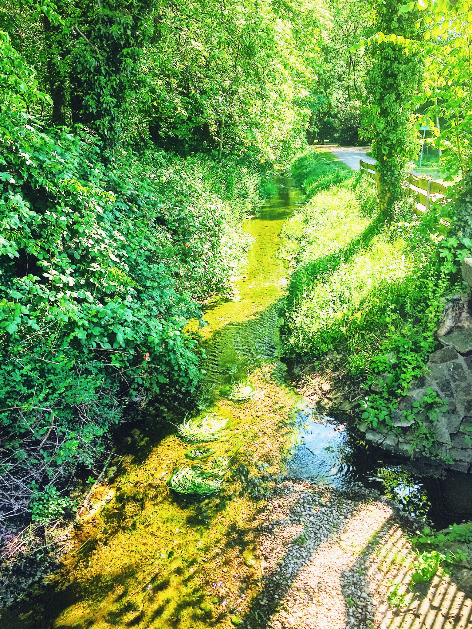 Ich wollte eigentlich ein schönes Bild vom Teich mit den Enten machen. Aber mein Handy macht auf Entfernung nicht mehr so tolle Fotos. Daher kriegt ihr nun eins vom Bach, der auch durch den Park fließt.