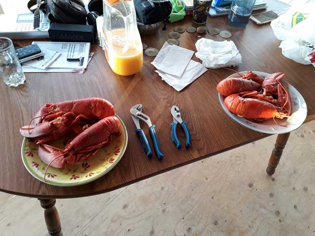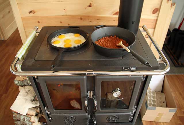 Wer dann irgendwann des Hummerschlemmens überdrüssig ist, der kann sich auch ganz zünftig auf dem Holzofen etwas brutzeln.