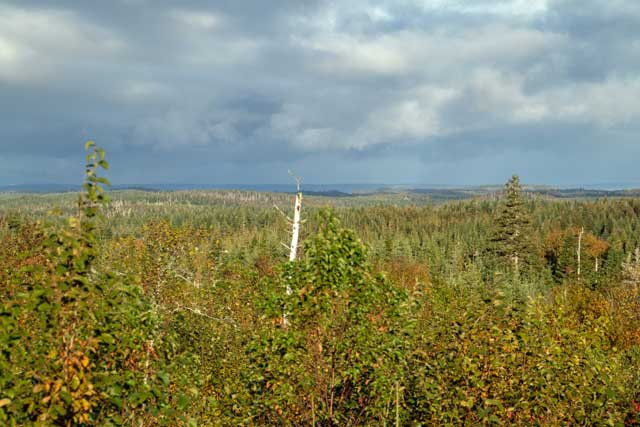Der Wald in der näheren Umgebung hat noch ein paar Narben von der letzten kommerziellen Forstaktion vor ca. 15 Jahren, aber die Natur ist hier so produktiv, dass man bald nichts mehr davon sieht. Die kanadische Provinz fördert die Renaturierung hin zum klassischen Ur- und Mischwald.