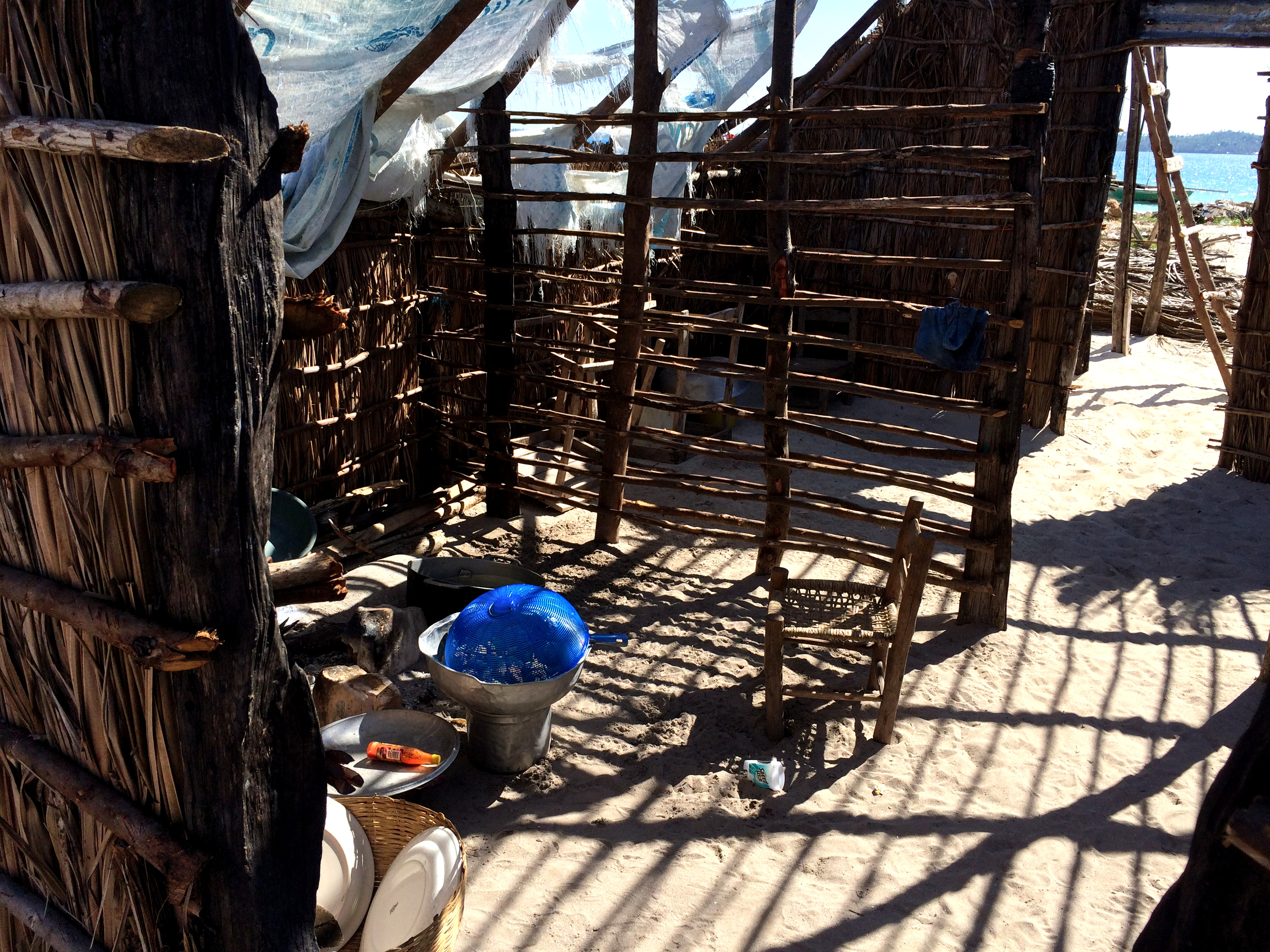 Ein alter Mann saß mit seinem Fischernetz im Schatten einer der Hütten und winkte uns zu sich. Er war neugierig und wollte wissen woher wir kamen und fragte ob das Meer bei uns zu Hause genauso schön sei wie hier. Wir winkten ab und sagten dass wir kein Meer hätten dort wo wir her kommen. Er zog die Augenbrauen hoch und knüpfte weiter an seinem Netz. Nach einer Weile fuhr er fort. Dann habt ihr auch keine Sonne dort wo ihr her kommt? Verwirrt fragten wir warum wir denn keine Sonne haben sollten. Er sagte dass die Sonne jeden Morgen aus dem Meer auftaucht und abends wieder im Meer verschwindet. Wenn wir also kein Meer hätten, dann könnte ja niemals die Sonne aufgehen.