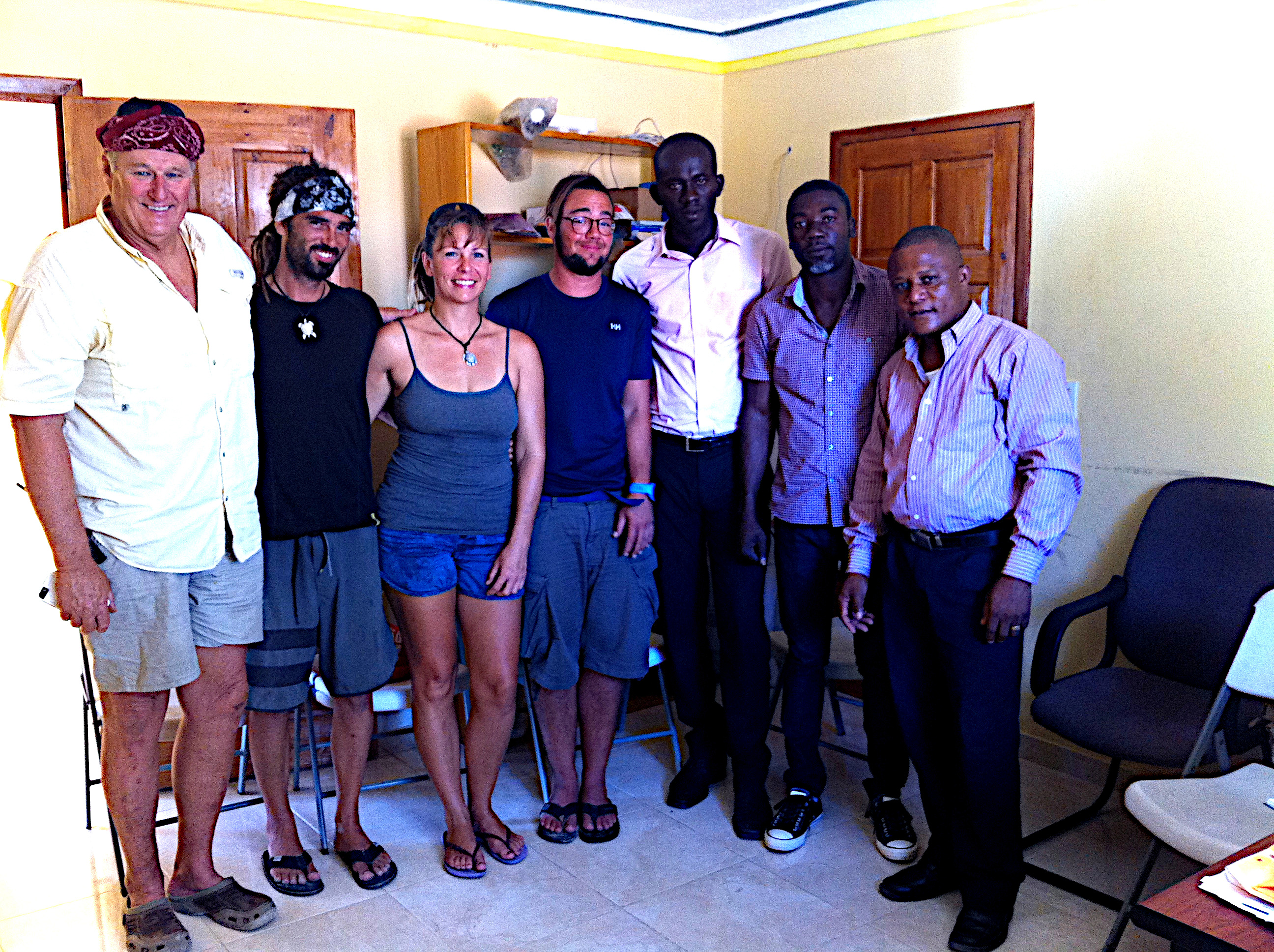 Es standen ein paar Stühle bereit und uns wurde sogar ein kaltes Begrüßungsbier gereicht. Auch wenn sie kein Trinkwasser mehr hatten, ein paar Kisten Bier hatten den Sturm offenbar unversehrt überstanden. Die drei Bürgermeister hielten eine kurze, aber feierliche Ansprache in Creole welche von einem Dolmetscher für uns ins Englische übersetzt wurde. Sie übermittelten uns ihre Dankbarkeit und ihre Hochachtung, dass wir trotz aller Vorurteile diese gefährliche Reise auf uns genommen hatten um ihnen zu helfen. Sie freuten sich das wir nun hier waren, sicherten uns zu das wir nichts zu befürchten hätten und sie sagten dass sie sich eine lang anhaltende Freundschaft und Zusammenarbeit mit uns wünschten.