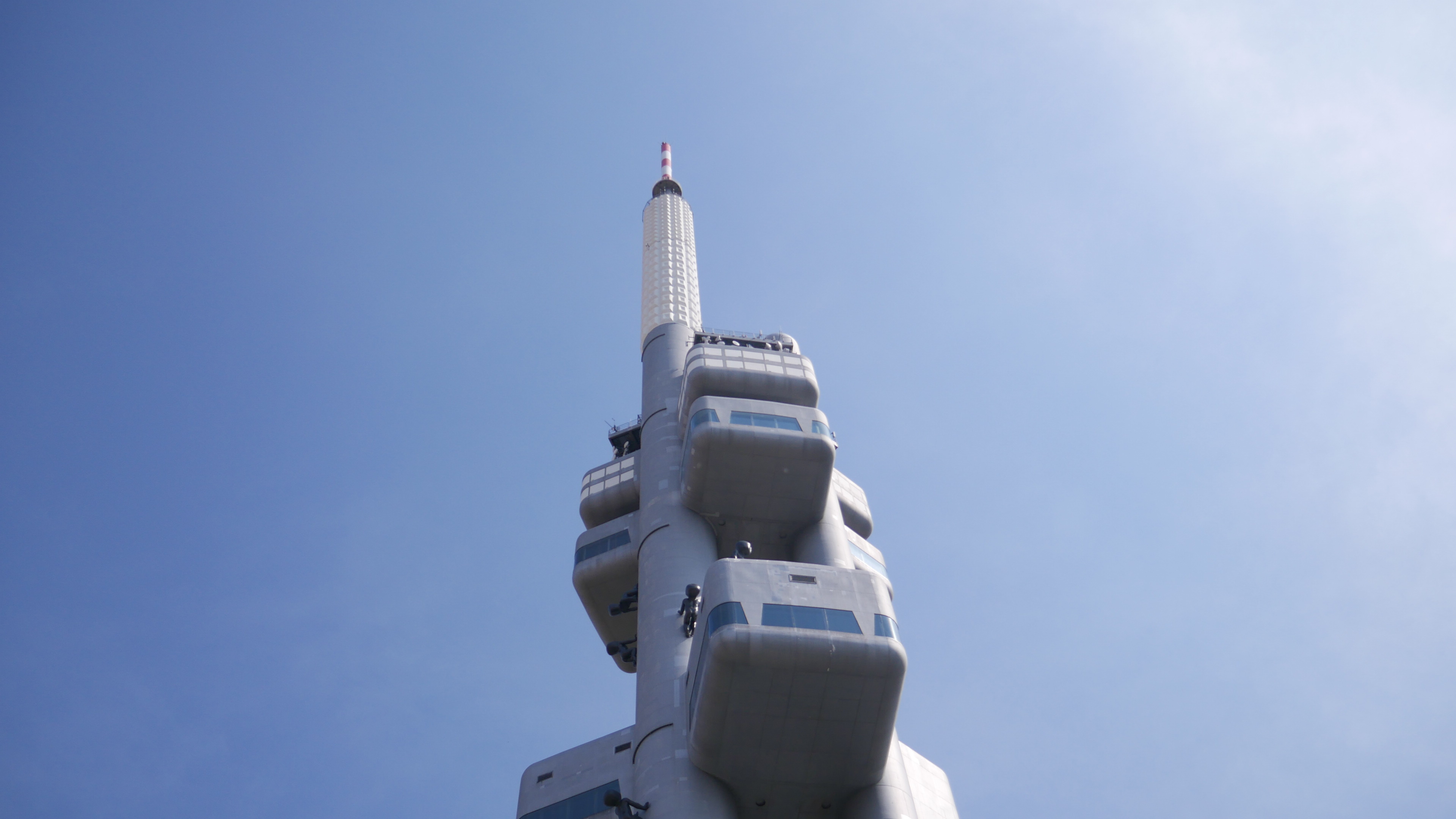 An diesem Tag hatten wir kein Programm, also wir hatten den ganzen Tag, um zu machen, was wir machen wollten. Und als wir gefrühstückt haben, haben wir auf ein paar Websites geguckt, um herauszufinden, was wir machen sollten. Und etwas das wir cool und interessant und auch ein bisschen komisch fand, war dieses Gebäude, der Prager Fernsehturm. Der Prager Fernsehturm ist laut einer Website, eines der hässlichsten Gebäude der Welt, und wir mussten dahin gehen, um zu sehen, ob das wirklich stimmt.