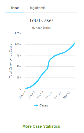 Parallel schaue ich mir gegenwärtig den Anstieg der Fallzahlen an und muss sagen, dass man da beinahe minütlich beim Steigen zusehen kann (Quelle).