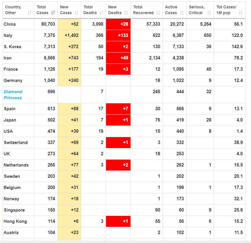 Ja, nachdem die neuen Fälle in China überschaubar sind, geht Europa gerade ab.